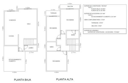 - Planta alta: vestíbulo distribuidor, dos recámaras, un baño completo común y una recámara principal con un baño completo privado.